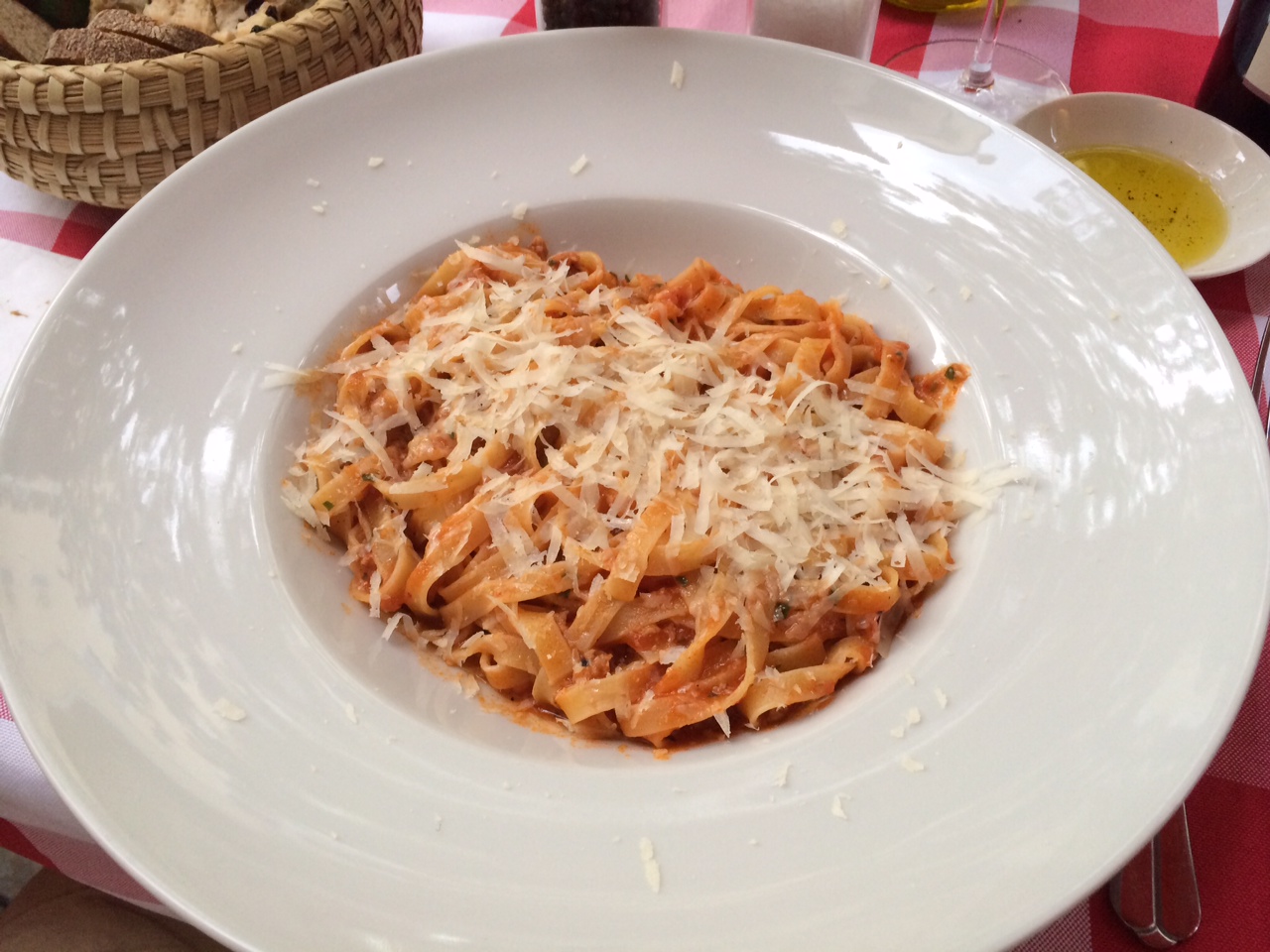Für mich das höchste der Gefühle bei Pasta, sind die Gefüllten. In diesem Falle Ravioli. Die Füllung vom Zander war delikat und die Sauce mit Kirschtomaten und Basilikum rundete das Ganze mit einer leichten Säure uns Süsse perfekt ab. Das Problem war höchstens, dass die Portion Tagliatelle schon derart gross war, dass ich einen Teil der Ravioli stehen lassen musste.