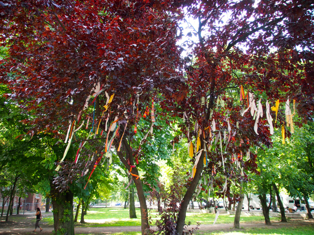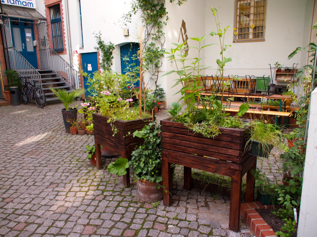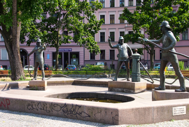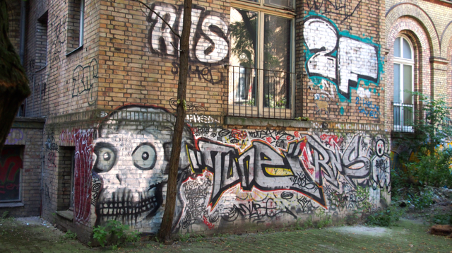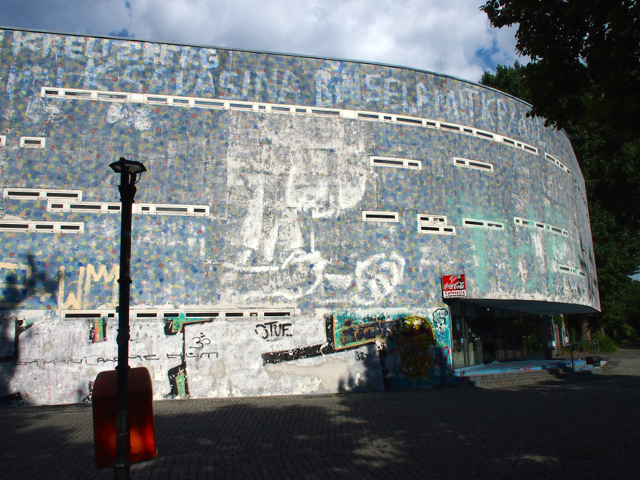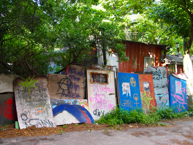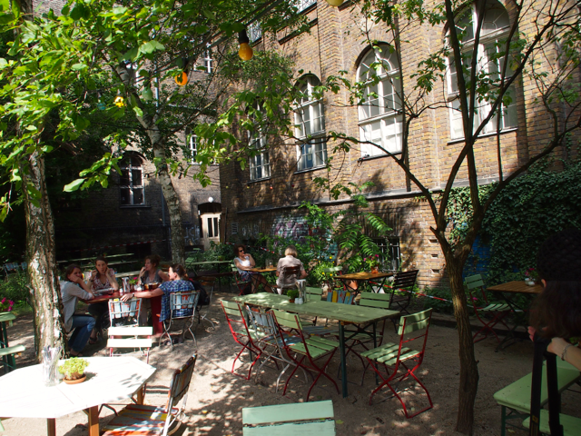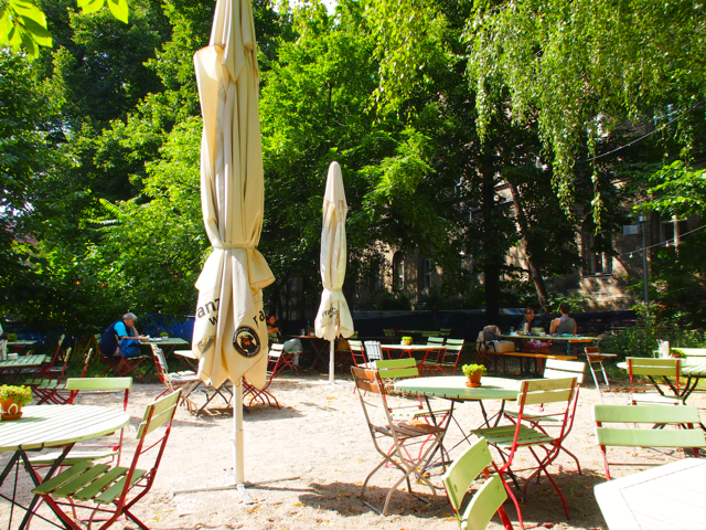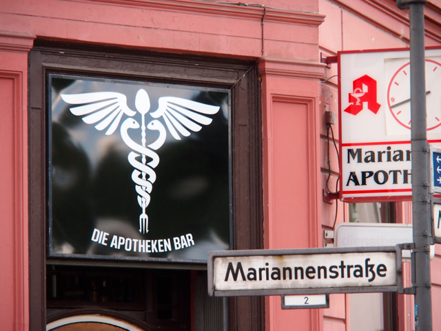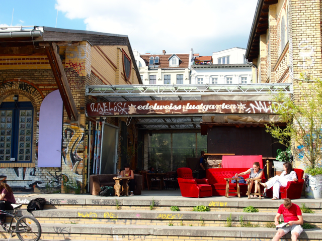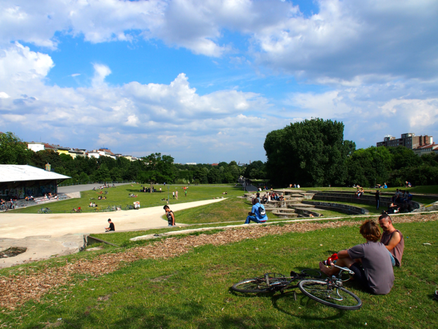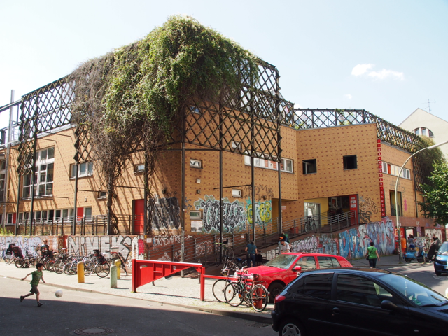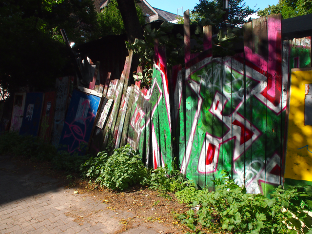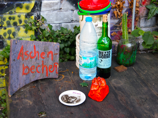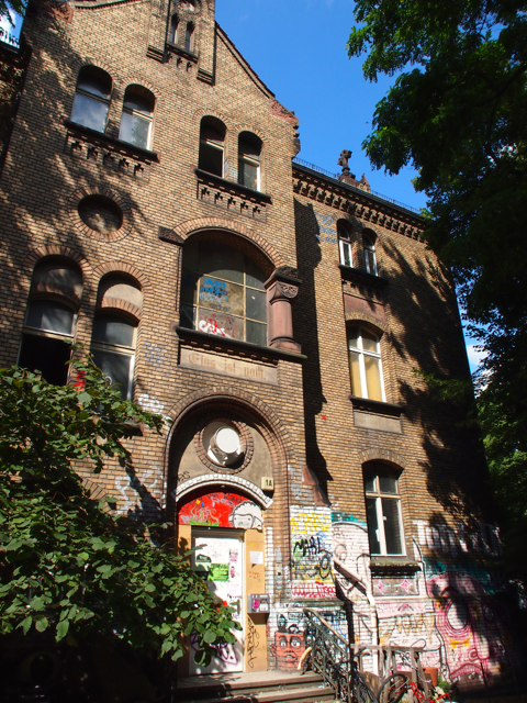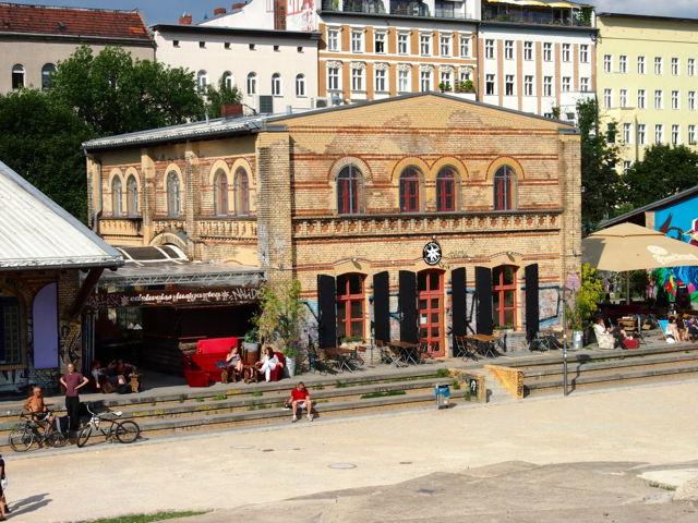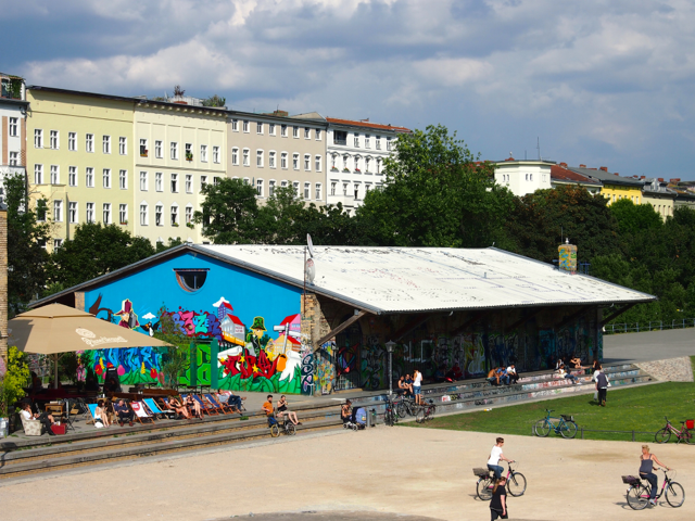 Über den Heinrich-Platz ging’s dann weiter zum Mariannenplatz, wo sich das Künstlerhaus Bethanien, ein ehemaliges Krankenhaus, befindet. Hier haben wir im Biergarten eine kleine Rast eingelegt. Nebenan im Rauchhaus finden Sie die Reste der ehemaligen Hausbesetzer-Szene. Auch die „Wagenburg“ war beeindruckend und tatsächlich wild. Sehr autonom und anarchistisch. Ich wollte da schon fotografieren, als meine Führerin meinte, das sei keine so gute Idee. Die Damen und Herren seien etwas publikumsscheu und es habe auch schon für Touristen eine Tracht Prügel gegeben. Ups.