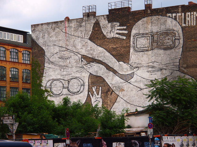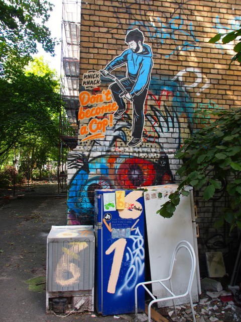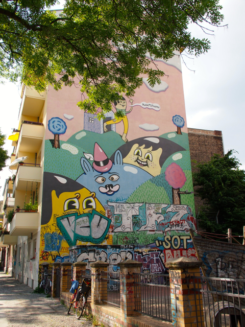 An beeindruckenden Gründerzeithäusern und dem Sozialpalast ging es zur pulsierenden Oranienstraße, dem Herzen des ehemaligen Postzustellgebiets SO 36, Namensgeber des Kiez. Hier finden sich Restaurants, Bars und Geschäfte mit dem typischen Kreuzberger Charme, die Berliner Blindenanstalt, das Museum der Dinge, Comicläden oder Boutiquen. Und überall findet man Komisches, Schräges und natürlich viel Strassenkunst. Ok, all die Graffitis könnte man jetzt als wild bezeichnen. Immerhin.