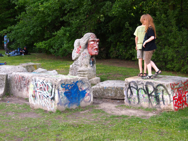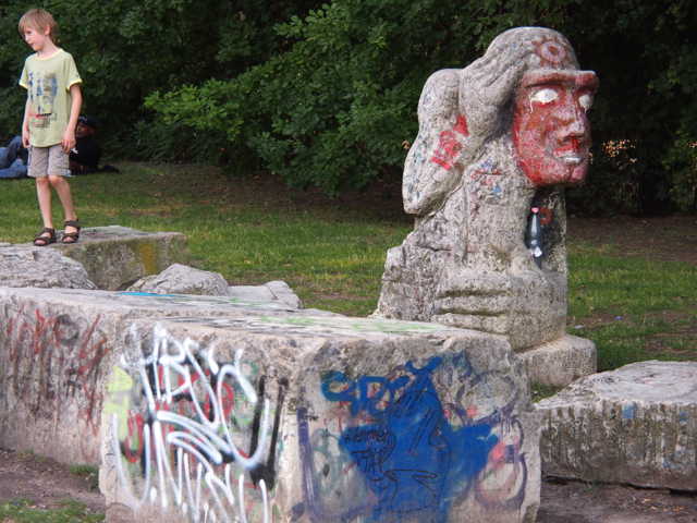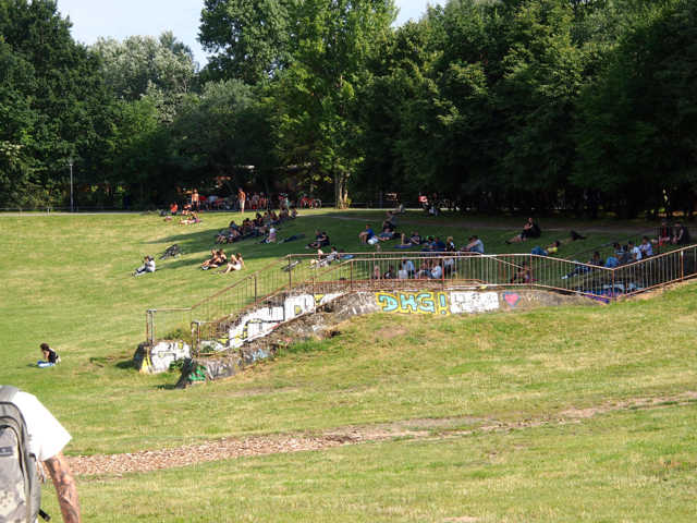 Im und um den Görlitzer Park wurde es dann endlich richtig wild. Bis jetzt war es ja ziemlich harmlos. Das lag vielleicht auch daran, dass es Tag war und all die bösen Jungs und Mädels noch am pennen waren. Endlich kamen die Drogen ins Spiel. Da standen die Schwarzafrikaner Spalier um Koks und ähnlichen Ramsch zu verkaufen. Ich lehnte danken ab, und als ich mich bei einem erkundigte, ob er auch Tiki habe, zuckte er nur mit der Schulter. Schlechter Service sage ich euch. Beruhigend war, dass die Polizei aus sicherer Distanz das Ganze beobachtet.